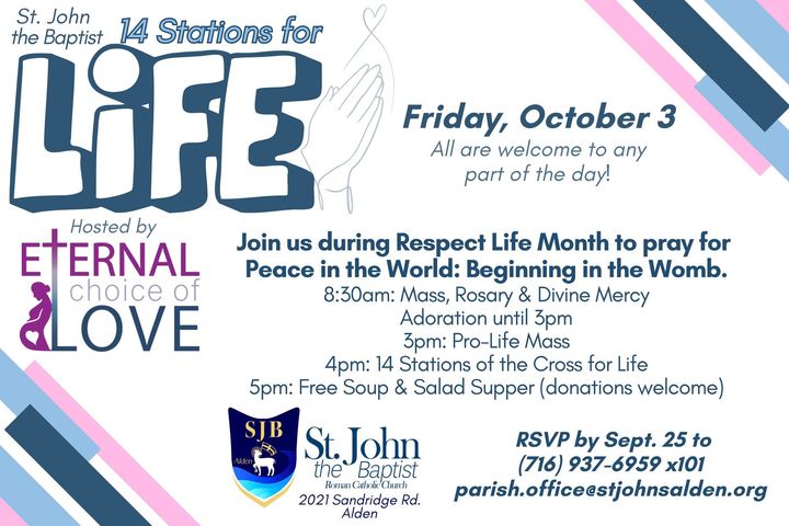 St. John the Baptist Family of Parishioners is a faith-filled Catholic Christian community, which believes in the Lord Jesus Christ, in His Church & its teachings, under the direction of our spiritual leaders. We watch & pray as we follow His call to love, life, fellowship, and holiness.